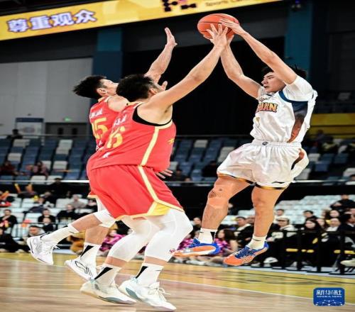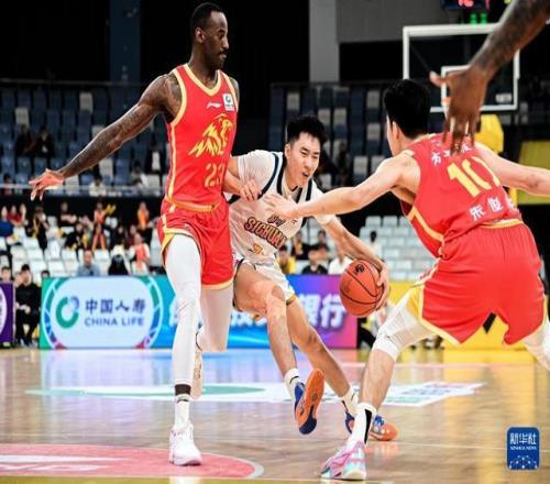 1月15日,四川丰谷酒业队球员段睿骐(中)在比赛中突破。新华社记者 江汉 摄