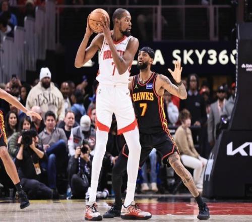 NBA常规赛,老鹰坐镇主场迎击火箭。本场比赛之前,火箭28胜17负排名西部第4,作为今年争冠热门之一,火箭的阵容结构非常扎实,锋线球员居多,人高马大,他们保持着联盟第一的场均篮板,攻防效率都在联盟前5。虽然火箭队目前的战绩,与上赛季同期相比提升幅度并不大,但杜兰特到来之后,火箭在季后赛的上限一定会提升,这一点是毋庸置疑的。另一边的老鹰队,本场比赛之前,24胜25负排名东部第9,近期老鹰迎来一波4连胜,正在势头之上,作为东部黑马之一,老鹰有机会在季后赛搅局。