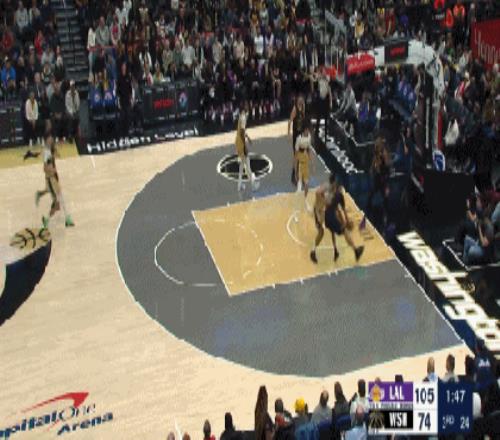 在东子三双的率领下,湖人全军出击,万箭齐发,半场湖人77-48领先奇才29分,直接打花了比赛。