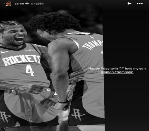 太阳球星杰伦·格林在INS晒出了两人合照,并祝阿门生日快乐。