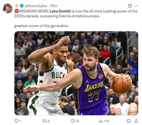 1月31日消息,1月31日结束的NBA常规赛中,湖人客场以142-111大胜奇才。本场比赛,湖人当家球星卢卡-东契奇半场砍...