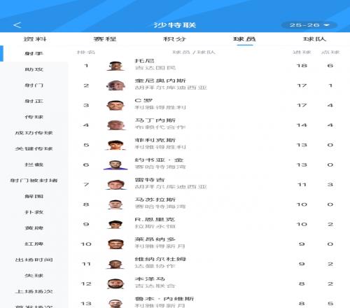 体育播报01月31日宣 本赛季沙特联第19轮战罢,目前的射手榜上,伊万·托尼18球居首,奎尼奥内斯和C罗以17球并列第二。